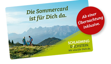 Sommer: Zahlreiche Wanderwege starten quasi vor der Haustüre. Die Schladming-Dachstein Sommercard ist ab 1 Übernachtung inklusive und eröffnet dir über 100 kostenlose und mehr als 100 ermäßigte Freizeitangebote – von Bergbahnen über Naturerlebnisse bis zu Familienabenteuern. Auch die Nutzung der öffentlichen Verkehrsmittel ist damit gratis.